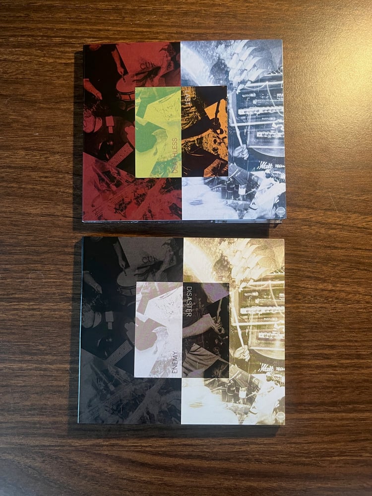 CDs with two of our LPs on each: one with Deathless and Last, the other with Enemy and Disaster. Sleeve design by Erica Shultz.